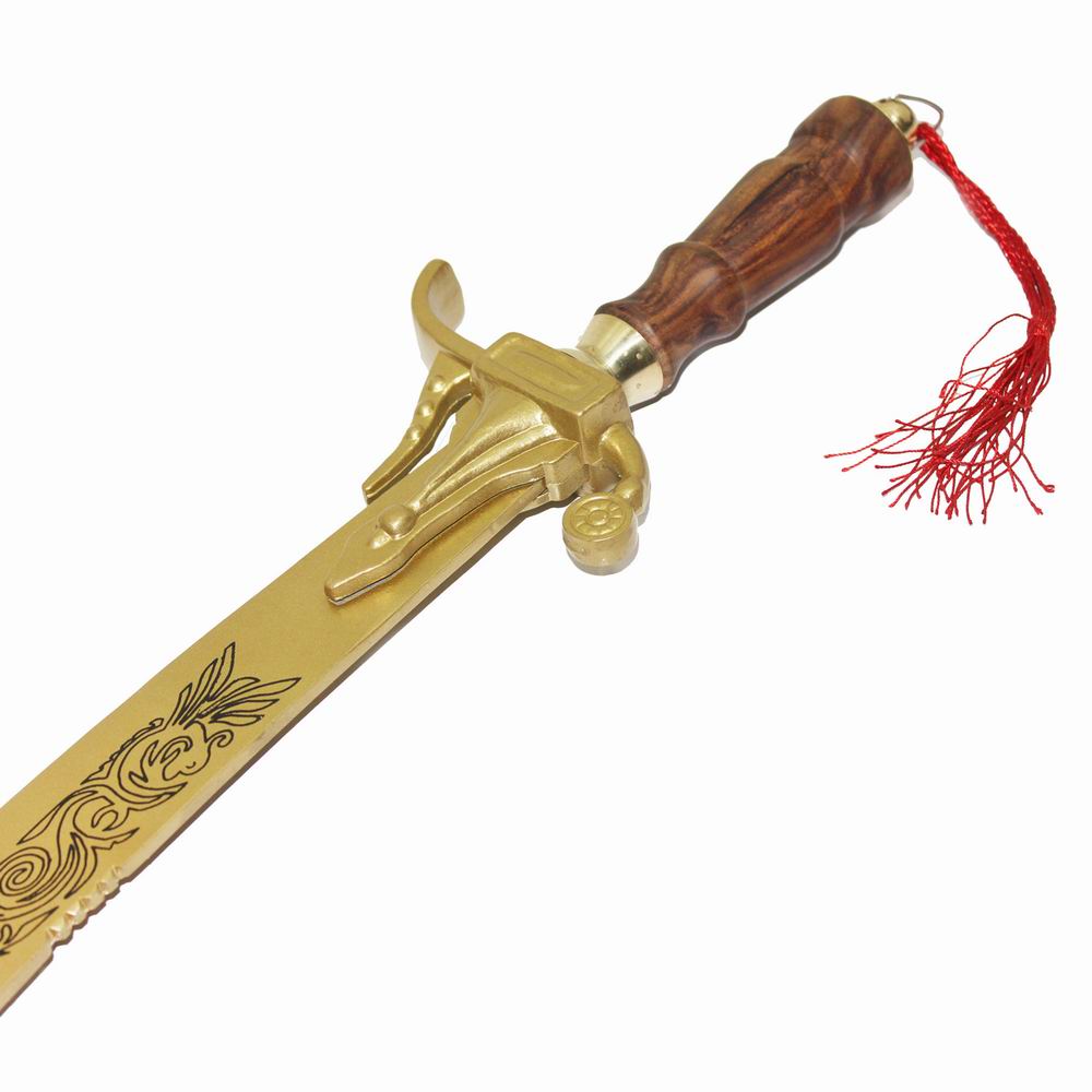 Sword Silver Blade with Golden Coating color and Screen Print Design, Metal Natural Wood Handle